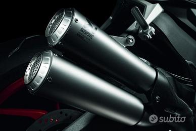 Il nuovo sistema di scarico è ispirato alle Ducati che corrono nei campionati SBK e MotoGP. Realizzato interamente in titanio, assicura un risparmio di peso di circa 1,7 Kg ed è completo di paracalore in carbonio. Rafforza il ruggito della Panigale trasformandola in una vera Superbike, pur rispettando i requisiti di legge. Peso dell'accessorio [kg] 1.930 Peso articolo di serie [kg] 3.600 Alleggerimento [kg] 1.670