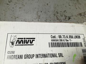 Silenziatore MIVV in alluminio satinato nero per Kawasaki Z 900 2020/2024. Nuovo!!! Realizzato per migliorare estetica, sound e performance della moto, lo scarico slip-on Mivv nasce dalla massima al design, con lo scopo di soddisfare coloro che vogliono distinguersi, anche attraverso il look della propria moto.La linea MK3, frutto dell’esperienza acquisita nei Campionati mondiali Moto3 e Moto2, è la perfetta sintesi tra performance e tecnologia. Dal design simile agli scarichi realizzati per il Motomondiale Moto3, il terminale MK3 offre dimensioni compatte e la capacità di sprigionare l’accattivante sound MIVV.La versione Black è caratterizzata da un corpo centrale in acciaio inox 304 nero con effetto "Black Moon", finitura ottenuta grazie a uno speciale processo di verniciatura a base ceramica, che unitamente alla grata di protezione sul fondello di uscita, conferisce al prodotto un look più aggressivo.