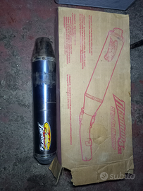 Come da titolo si vende silenziatore scarico terminale in titanio x moto da cross o enduro marca FMF modello titanium 4 sl. Usato ma in ottimo stato,lunghezza totale 53 cm,diametro attacco 50mm..