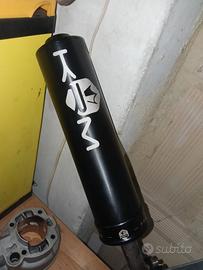 marmitta stage 6 passaggio basso 90-100 con una piccola bozza sotto che da montata nemmeno si vede, il silenziatore è un krm nero e ha 9.2h, ha il morsetto per attaccarla alla staffa stage 6 nero e la boccola riduttrice da 32mm, inoltre assieme cedo anche 2 silenziatori stage 6 da riaggiustare; 300