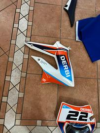 I PEZZI SONO: parafango yz maschera faro ktm maschera arancione originale piatta universale codino e fiachetti originali parapignone str8 blu pelle copertura sella blu caperchio tappo benzina