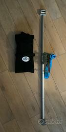 Una volta riposto nella sacca misura 33X15x8 e pesa kg. 1,8