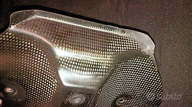 SOTTOCODONE BIPOSTO(PUÒ ESSERE MONTATO ANCHE SUL TELAIETTO IN ALLUMINIO MONOPOSTO) IN CARBONIO ORIGINALE DUCATI CON UNA RIPAZAZIONE ALL’ANGOLO SX EVIDENZIATO IN FOTO.