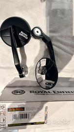 Vendo specchietti per moto Royal enfield classic Bullet Meteor bar end, comprensive di tappi e di adattatore. Utilizzate solo sei mesi e come nuove prodotto originale, come si vede dalla scatola.