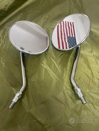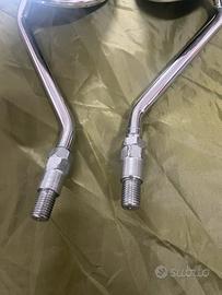 Coppia specchietti cromati tondi destro e sinistro nuovi omologati per moto custom dragstar virago vespa o scuter attacco universale regolabili girevoli.