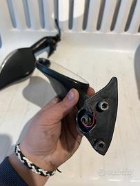 Vendo specchietti FAR con frecce integrate per ducati panigale 1199 2014. Allo specchietto sinistro si é staccata la plastica protettiva dei led della freccia ed ha i fili un po corti ma si riescono a collegare. Spedizione veloce prezzo trattabile di poco.