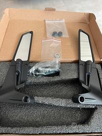Vendo specchietti moto universali con attacco a manubrio, realizzati in lega di alluminio cnc ad alta resistenza, con bulloni da 8mm, 10mm e 12mm. Pari al nuovo, condizioni perfette.