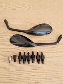 Vendo specchietti moto universali con diversi adattatori. Lo specchietto è composto da alluminio e una copertura effetto carbonio. Erano montati su un Ducati Monster. Il prezzo s'intende per la coppia.