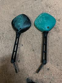 Vendo causa mancato utilizzo specchietti ORIGINALI zip prima serie del 1992 filo verde doppio tamburo (visibile in ultima foto). In origine gli specchietti erano verdi in linea con le carene, uno è stato riverniciato di nero, l'altro è ancora del colore originale ma è un po' rovinato e gli manca lo specchio.