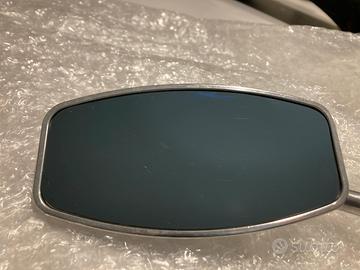 Vendo coppia di specchietti retrovisori in alluminio ricavati dal pieno. Erano montati su una Triumph Legend Thunderbird. Talmente soddisfatto che li ho ricomprati uguali ma di colore nero quando ho customizzato la moto. Dimensioni e stato sono visibili dalle foto, non hanno viti o altra roba che si allenta, restano belli saldi dove li posizionate. Per coloro che sono stanchi di vedere delle padelle enormi sulle proprie moto classiche scrambler o naked.
