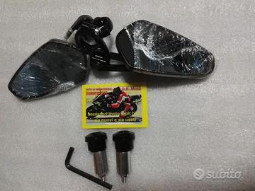 Specchietti universali moto Bar-end per custom, cafè racer, scrambleR Specchietti con innesto nel manubrio vanno all'interno dello sterzo alle 2 estremità destro e sinistro con una boccola ad espansione Norton Harley Davidson royal enfield bullet gilera motoguzzi Ideali x moto custom, bobber chopper, cafe racer. Sono ideali per personalizzare in modo originale la vostra moto, special, scrambler, enduro, regolarità, café racer, street tracker. Adattabile a honda, yamaha, kawasaki, suzuki, harley davidson, guzzi, husqvarna, bmw, fantic, bultaco, montesa, ossa, ducati, royal enfield, triumph, scrambler. Aprilia shiver, tuono, caponord, mana, dorsoduro, Benelli tornado, tre, Bimota, BMW f800r, k1300, r1200gs, s1000r, r1200r, nine, f700 gs, r1200 gs, Ducati monster 600 620 695 750 800 900 s2r 1000 s4 s4r, st2, st3, st4, streetfighter, diavel, multistrada, hypermotard, Honda cb 500 1000 1300 500, cbf,, cb, cbr ctx, crossrunner, crosstourer, deauville, hornet 600 900, transalp 650 700, varadero 125 1000, vfr 1200 750 800, x-11, Kawasaki er-6f, er-6n, gtr 1400, versys 1000, versys 650, w800, z1000, z800, z750 600 750 1000, KTM duke, super duke, 990sm, supermoto, adventure, ninja 600 900 Moto Guzzi, MV Agusta brutale, Suzuki gsr, inazuma, bandit 1250,bandit 650, gladius 650, sv 1000 650, V-storm, Triumph speed triple, street triple, tiger, Yamaha fz8 fazer, fjr 1300, fz1, fz6, fzs, r1 r3 r6 r125 mt-125, mt-07, mt-09, tdm 850 900, xj 600 900, xj6, xjr, xt 1200 z super tenere gsx r gs gsx , xt 660 z tenere t max burgman xcity xmax ecc.. info e contatti 3498025527 3928620274 per altri ricambi e accessori visita il nostro shop