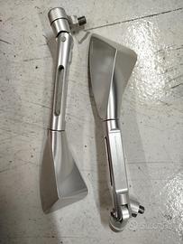 Coppia specchietti Rizoma Tomok per moto naked, colore argento, condizioni apri al nuovo. Montati su moto ducati, per altre moto, c’è da acquistare a parte gli adattatori specifici.
