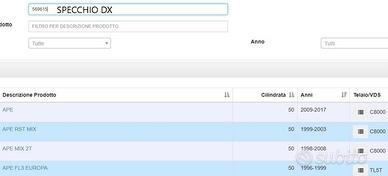 SPECCHIO DX ORIGINALE APE 50 569615 APE 50 DAL 1996 2017 NUOVO VEDI TABELLA MONTAGGIO