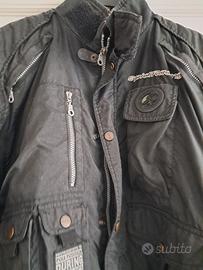 Come da foto solo colletto usurato il resto in ottime condizioni colore nero doppio interno maniche staccabile multitasche .