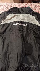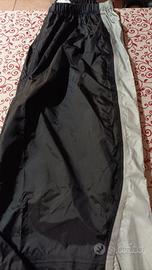 Tuta totalmente impermeabile offre una efficace barriera all' acqua.comprimibile con la sua sacca per un comodo trasporto.giacca con fasce riflettenti, tessuto poliestere, frangivento.Doppia chiusura cerniera e velcro, ampie tasche ben chiuse.nella zona lombare un elastico per maggiore comfort.I pantaloni in fondo hanno chiusura con tre velcro per maggior protezione dall' acqua. Tuta usata due volte in una stagione taglia L.