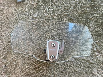 Spoiler universale trasparente da montare sui cupolini / parabrezza 12,5 x 25,0 cm (H x L); il sistema di ancoraggio in alluminio permette di regolare l'altezza e l'inclinazione dello stesso. Il cliente deve verificare che il sistema di attacco del cupolino / parabrezza originale della moto sia sufficientemente robusto da consentire il montaggio dello SCREEN SPOILER. Ha dei micrograffi, necessita di lucidatura con prodotti per parabrezza