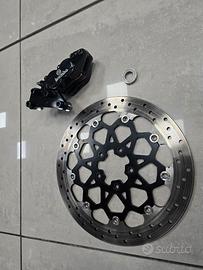 Kit specifico composto da staffa più pinza freno Brembo 4 pistoni per Harley Davidson Sportster con disco singolo anteriore da 320 mm.