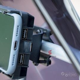 Dettagli Staffa smartphone navigazione r 1200 gs 2004 al 2012 Grazie a questa staffa smartphone di navigazione per gs 1200 dal 2004 al 2012 o qualunque altra moto con telaietto di aggancio da 12mm a 22mm (grazie all'adattatore compreso in confezione ) avrete la possibilità di installare in maniera facile e veloce qualunque smartphone da 3,5''a 6,5'' pollici . Oltre ad una migliore esperienza di guida la staffa di ricarica smartphone consente anche di ricaricare il proprio dispositivo android o ios grazie alla doppia uscita usb. Nella confezione sarà incluso tutto il kit necessario per l'installazione della staffa smartphone oltre al cavo di alimentazione che permetterà di riprendere corrente dall'impianto della moto stessa (se qualora lo necessitasse). Specifiche : Porte : 2 Usb Adattatore in metallo verniciato a polvere con baset Compatibilità staffa smartphone navigazione : Universale con telaietti con diametro da 12mm a 22mm grazie all'adattatore incluso Compatibilità adattatore senza il montaggio della staffa smartphone : L'adattatore grazie alla presenza di diverse traforazione è compatibile per l'installazione di alcuni modelli navigatori GPS tra cui : Garmin ZUMO tutte le versioni TomTom Rider tutte le versioni Action Cam per riprese Altri dispositivi per installazione di smartphone/gps/navigatori dotati di template per il fissaggio Bundle 1 Confezione : 1x Staffa ricarica porta smartphone dual ubs 1x Adattatore di montaggio per telaietto/archetto da 12mm a 22mm 1x Cavo di alimentazione 1x Cavo Usb Viteria di montaggio Bundle 2 Confezione : 1x Adattatore di montaggio per telaietto/archetto da 12mm a 22mm Viteria di montaggio Costo Bundle 1 : 85€ Costo Bundle 2 : 55€
