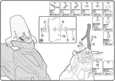 USATO - Staffe per supporto Parabrezza GIVI 5600 (Basso o Alto) per MP3 300 ERL Yourban, con viti inclusi (ex D5600KIT).