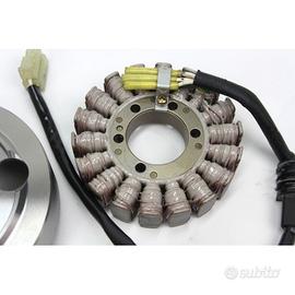 Il seguente ricambio: STATORE + VOLANO è originale YAMAHA ed ha codice 5SL0386001811 5SL814500100 5SL814100000 . Dopo accurati controlli e verifiche i nostri tecnici hanno rilevato le seguenti condizioni: - SOLO 2600 KM PERCORSI - PARI AL NUOVO - ORIGINALE YAMAHA - PROVENIENTI DA VEICOLO INCIDENTATO E RIMASTO STOCCATO IN CONCESSIONARIO YAMAHA FINO AD OGGI . I modelli YAMAHA compatibili sono i seguenti : YZF-R6 2003 2004 / YZF-R6 2005 /