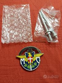 Federazione Motociclistica Italiana. Stemma in metallo certifucato storico. Con supporto per attacco. Nuovo in confezione originale.