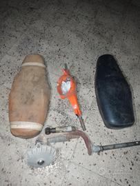 sterzo originale e completo di vespa rally dentro il vano sterzo c'è un sacchetto con le leve interruttore e spia originali tolti x evitare rotture oppure crepe euro 180 euro, forcella originale euro 100, e 40 l'altra solo con la spugna (( non accetto proposte i prezzi sono questi e le foto chiare ..))) la sella sulla destra con fodera e stata venduta