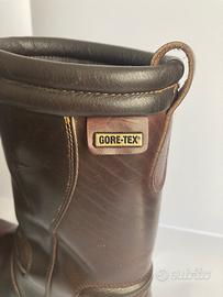 Stivaletti per tutte le stagioni. Il goretex permette l'uso sia durante le giornate calde che in inverno. Impermeabili l. Usati pochissimo come si può dedurre sia dalla pelle ancora intonsa sia dalla suola. Misura 40. Nella loro scatola originale. Calzati sotto i pantaloni sembrano delle scarpe quindi adatti ad ogni abbigliamento.
