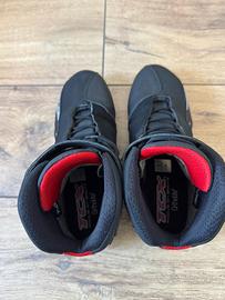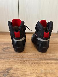 Le specifiche includono: Tomaia: - Microfibra "Soft Touch" combinata con pelle scamosciata - Micro iniezioni e prese d'aria nella zona della caviglia - Cursore punta in poliuretano e pad in pelle scamosciata - C.F.S. (Comfort Fit System) - Sviluppato come risultato di anni di know-how TCX, è sempre stato uno dei punti di forza dei prodotti touring. Questa speciale tecnica praticamente interamente manuale permette di modellare lo stivale su uno "stampo" che riproduce fedelmente l'anatomia del piede, rendendo il prodotto eccezionalmente confortevole e ideale per un uso prolungato in diverse situazioni Fodera: - Impermeabile rinforzi: - Rinforzo per punta e schiena Chiusura: - Sistema di allacciatura con velcro - Inserto micro iniettato per una facile apertura della banda Plantare: - Anatomico e sostituibile Suola: - Alta resistenza all'usura tutti gli usi suola Certificazione CE
