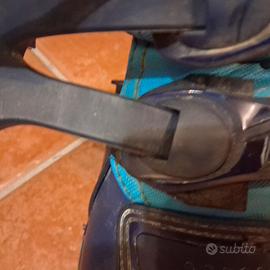 stivali da enduro / motocross taglia 43 blu/azzurri usati ma in buono stato vendo causa inutilizzo. N.B.: il gancio di attacco sul piede dello stivale sinistro è stato rinforzato con ulteriore gomma come da fotografie.