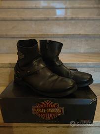 Stivali Harley Davidson usati in pelle nera, taglia 45. Perfetti per la stagione autunnale! Questi stivali robusti e alla moda offrono comfort e protezione. Ideali per motociclisti e amanti dello stile biker. Un'occasione da non perdere per aggiungere un tocco di grinta al tuo guardaroba!