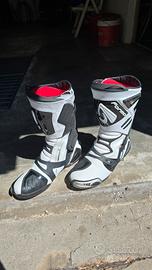 Vendo bellissimi stivali da moto Forma Ice Pro, colore Bianco/Nero, Taglia 46. Si tratta di un prodotto top di gamma, ideale per chi cerca la massima protezione in pista o nei giri domenicali più sportivi. Gli stivali sono stati usati pochissimo e si presentano in condizioni impeccabili, come visibile dalle foto (suole intatte e slider mai toccati). Dettagli Tecnici e Materiali: Tomaia: Realizzata in Microfibra tecnica (più leggera, resistente e idrorepellente rispetto alla pelle tradizionale). Protezione F.C.S. (Flex Control System): Sistema anti-torsione della caviglia in poliuretano con inserti carbon-look. Massima sicurezza senza limitare il movimento necessario per il cambio e il freno. Slider: Punta in acciaio inox sostituibile (molto più resistente di quelli in plastica). Interno: Fodera in Air Mesh rosso traspirante per un comfort ottimale anche in estate. Suola: In gomma a tripla densità, resistente a olio e benzina, con grip specifico per le pedane racing. Chiusura: Regolabile con cricchetto micrometrico e zip. Certificazione: CE Livello 2 (standard massimo di sicurezza). Prezzo: 150€ (poco trattabili date le condizioni). Disponibile per consegna a mano in zona Trento per permettere all'acquirente di verificare l'integrità del prodotto. Disponibile anche alla spedizione tramite il servizio "TuttoSubito".