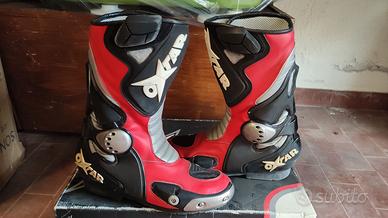stivali moto Oxtar 7610i n.42 colore rosso, nero grigio hanno delle riparazioni sulla punta come da foto