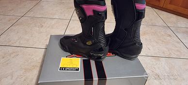 Vendo splendidi stivali da moto TCX SP-Master Lady, taglia 39, colorazione Black con dettagli Fucsia. Gli stivali sono stati utilizzati pochissimo e si presentano in condizioni eccellenti (come visibile in foto). Vendo esclusivamente per inutilizzo a causa della vendita della moto. Caratteristiche Tecniche (Top di Gamma): Questi stivali sono la scelta ideale per chi cerca il massimo della protezione senza rinunciare al comfort: Certificazione CE: Progettati secondo i più alti standard di sicurezza. Sistema Anfibio e Protezione: Dotati di rinforzi su tibia, malleoli e tallone, oltre a uno slider anteriore intercambiabile. Comfort Superiore: La tomaia in microfibra e il plantare OrthoLite® garantiscono traspirazione e comodità anche dopo ore di guida. Versatilità: Perfetti per la guida sportiva su strada e ottimi anche per le prime esperienze in pista. Perché sceglierli? Oltre alle performance tecniche di alto livello, il design è pensato specificamente per l'anatomia del piede femminile. I dettagli fucsia non sono solo un tocco di colore, ma un dettaglio estetico fantastico che dona carattere e un look grintoso sotto la tuta o i jeans tecnici. Un mix perfetto tra tecnicità "pro" e stile. Info Aggiuntive: Taglia: 39 Stato: Usati pochissimo, con scatola e etichette originali Consegna: Disponibile per consegna a mano in zona Lecco o spedizione tramite TuttoSubito. Contattatemi pure per ulteriori foto o info. No perditempo!