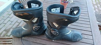 stivali racing full protezione . usati poco misura 46 ma calzano a un 45 / 45 e mezzo avendo la doppia scarpetta interna per evitare che si sentono le protezioni esterne sul tallone eccecc . Eccellenti per uso intenso in pista o anche strada impegnativo .