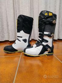 Stivali Touratech Destino Adventure nuovi tg 43. Colore Stone (bianchi neri). Rimando al sito per i dettagli. Sinteticamente è uno stivale di ispirazione enduro, in pelle, suola cucita, puntale installabile in metallo ed un cavetto integrato per legarli alla moto. L'unicita' del prodotto è che è uno stivale modulare, all'interno c'è una scarpa impermeabile con membrana outdry che può essere sfilata dallo stivale ed utilizzata autonomamente quando si lascia la moto, sia durante una sosta del viaggio, che quando ci si ferma.