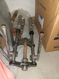 vendo in blocco diversi componenti per moto epoca, serbatoi guzzi, vari manubri, un blocco per stornello e forcelle, motobì forcelle ed alcuni carburatori( quest'ultimi vanno revisionati o utilizzati per ricambi)