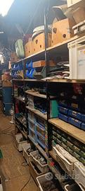 I pezzi sono attualmente organizzati in un magazzino (come da foto) e coprono una vasta gamma di modelli, dai motori anni '50 fino alla componentistica degli anni '70 ed oltre.