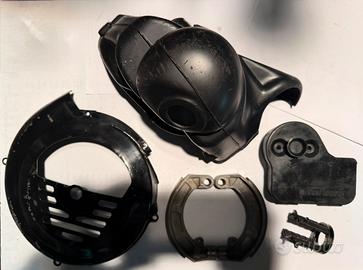 -Cuffia motore originale Piaggio logo quadro per motore standard V5A1M (buono stato come da foto) e relativa griglia ventola in lamiera!