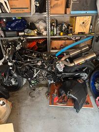Ktm superduke 990 2008 Blocco Motore ( gira , pompa acqua da fare )1200€ trattabili Telaio con documenti e targa 800€ ( prenotato) Manubrio RIZOMA basso 80€ Devio luci 40€ cadauno Sensore temperatura aria 20€ Cavalletto 25€ Perno ruota ant 35€ Perno ruota post 40€ Tubo freno ant 40€ Tubo freno post 20€ Carene 350€ Serbatoio con pompa benzina 350€ Pompa benzina 100€ Cerchio posteriore completo 220 € Sella 65€ Vaschetta espansione 30€ Serbatoio olio 120€ Forcellone posteriore 120€ graffiato lato catena Pinze freni brembo anteriori 270€ Pinza posteriore 80€ Pompa freno anteriore e leva 110€ (prenotato) Forcella anteriore con piastra 500€ Radiatore 120€ Snorkel airbox 3d 15€ Convogliatori aria freni 3d 10€ Ventola raffreddamento 60€ Valvola aria secondaria 30€ Motorino avviamento 100€ Carter pignone 20€ Corpo farfallato completo di iniettori 250€ Scatola filtro 60€ Filtro bmc 40€ Attuatore frizione 70€ Supporti motore 70€ Candele nuove ngk 30€ Cablaggio completo ( attacco al relais di avviamento tagliato ) 80€ Tubi raffreddamento 15€ Scatola porta batteria 20€ Bobine con candele nuove! 110€ Cavalletto 20€ Volendo posso smontare il motore a pezzi : Alberi a camme 150€ coppia Coperchi punterie 100€ coppia Gruppo frizione 100€ Carter statore 100€ (paraolio contralbero nuovo) Testate 500€ coppia Cilindri 300€ coppia Blocco senza pezzi elencati sopra 450€ Attuatore frizione 70€ Motorino avviamento 100€ Iniettori 100€ Corpo farfallato ( senza iniettori) 260€ E altri accessori su richiesta. Preferibile ritiro a mano a Milano