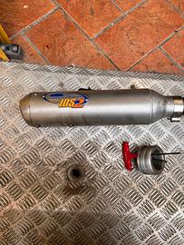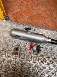 Vendo terminale di scarico supertrapp per xl 600 r Probabilmente monta anche su altre moto, ma non lo posso assicurare. Su xl 600 r sicuro monta come vedete dalla foto. È completo di collettore per installazione su collettori originali. Ha anche tutte le lamelle interne per regolare l’erogazione della motore. Per ricerca xl xr xt tt 600 400 Honda