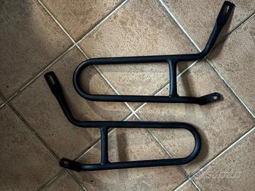 Vendo coppia di supporti laterali aftermarket per Royal Enfield Super Meteor 650. Struttura in acciaio verniciato nero, robusti e ben realizzati. Consentono il montaggio di borse laterali mantenendo la corretta distanza da ruota e ammortizzatore. Smontati dalla moto, in ottime condizioni. Attacchi integri, nessuna piega o deformazione. Ideali per chi vuole montare saddle bag senza spendere per gli originali. Preferibile consegna a mano. Spedizione possibile a carico dell’acquirente.