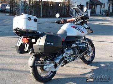 Vendo supporti/telai interni originali BMW per valigie laterali sistema BMW. Compatibili con: BMW R1150 GS BMW R1150 GS Adventure Probabile compatibilità anche con R1100 GS / R1150 RT (verificare) Condizioni: Usati ma in ottimo stato strutturale Nessuna rottura o crepa Completi di bulloneria come da foto Codici stampati: 46.54-2 316 422 (OEM BMW) Ideali per: Riparazione valigie danneggiate Ricambi originali difficili da trovare Prezzo: 79€ trattabili Possibilità di spedizione.