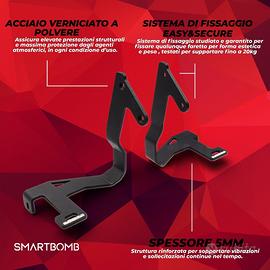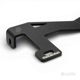 Supporto sottobecco dedicato per faretti supplementari a punto di fissaggio singolo, sviluppato esclusivamente per BMW R1300GS Adventure. in metallo lavorato con tecnologia di taglio laser ad alta precisione e successivamente trattato con verniciatura a polvere, assicura elevata resistenza nel tempo contro agenti atmosferici, vibrazioni e utilizzo gravoso, mantenendo un’estetica perfettamente integrata con il design originale della moto. Se desideri aumentare la resa luminosa rispetto ai faretti di serie della tua R1300GS Adventure, questa staffa rappresenta la base ideale per installare proiettori supplementari più performanti, inclusi modelli Smartbomb o compatibili, migliorando visibilità, sicurezza e presenza su strada. Il sistema di fissaggio sfrutta i punti di ancoraggio originali interni alla scocca, evitando modifiche strutturali e preservando l’aspetto estetico della moto. La posizione sottobecco garantisce stabilità, allineamento corretto dei faretti e una struttura solida anche in condizioni dinamiche impegnative. Adatta sia per utilizzo adventure/off-road sia per normale circolazione su strada pubblica. Specifiche Tecniche Compatibile con: BMW R1300GS Adventure (tutte le versioni e annualità) Spessore: 5mm Materiale: Acciaio con verniciatura a polvere elettrostatica Peso: 900gr Contenuto della confezione 1 x Staffa sottobecco per faretti BMW R1300GS Adventure Kit viteria completo Istruzioni di montaggio revisionate Smartbomb