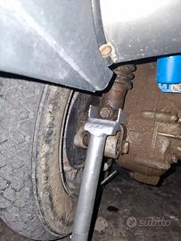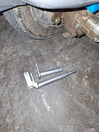 Supporto artigianale per tenere sollevata la vespa per una rapida sostituzione della ruota posteriore, si infila alla base dell'ammortizzatore.
