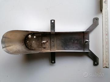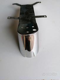 Supporto portatarga e fanalino per moto d'epoca anni 60/70. Pezzo in buono stato in metallo cromato. Presenta segni del tempo e ossidazioni superficiali come da foto. 20 euro