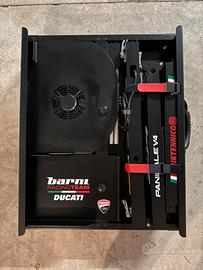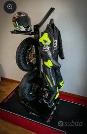 Vendo supporto - trespolo tuta e casco moto : Questo è un accessorio indispensabile per organizzare al meglio il tuo spazio durante i trackdays. Che sia nel box o sotto al gazebo, ti permette di alloggiare comodamente tuta, casco, guanti, stivali e addirittura tenere a portata di mano una coppia di cerchi. Dotaro di asciuga casco integrato e di presa per alimentazine termocoperte doppi cerchi e USB per ricarica cellulare. Come puoi notare dalle foto, è facilmente trasportabile, è leggero e occupa poco spazio. Realizzato interamente in alluminio , una volta smontato diventa come una valigetta. Il tuo accessorio perfetto per tenere tutto in ordine e ben organizzato! Gli adesivi sono completamente removibili.
