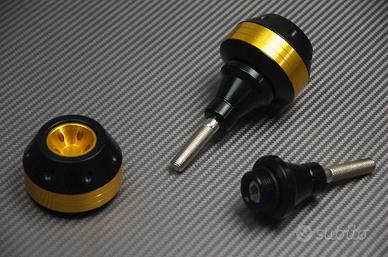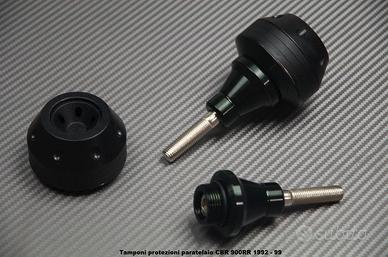 Ecco perché, anche se non lo speriamo, questi tamponi di protezione rendono possibile, in caso di caduta, di non danneggiare la carena, il serbatoio ... (e quindi avere meno spese da prevedere)Modello con tamponi protettivi in teflon.