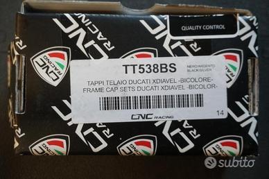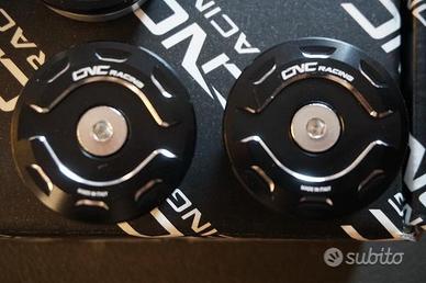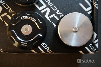 tappi protezione telaio CNC RacingNuovi mai usatiTappi telaio realizzati dal pieno in lega leggera con successiva anodizzazione superficiale.Il kit è composto da 4 tappi ognuno nelle misure precise per adattarsi ai vari fori del telaio.Prezzo 100 euroPossibilità di spedizionePossibilità di pagamento tramite Paypal (+3%) o BonificoRitiro a mano presso la nostra officina a San Massimo (VR)