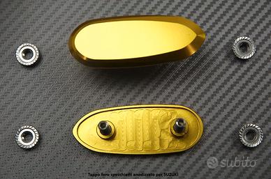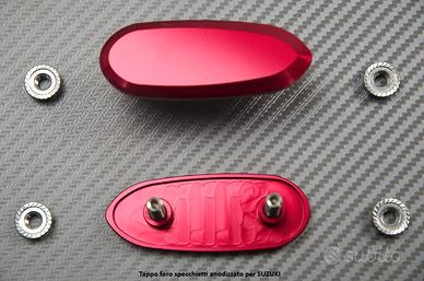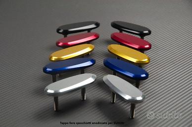 Per garantire la finitura quando si passa ad un utilizzazione su pista, o se si sostituite gli specchietti d'origine per modelli che si adattano sull'estremità del manubrio; questi tappi per gli specchietti (tappi in alluminio) permettono di coprire i due fori per il fissaggio sulla piastra superiore forcella.