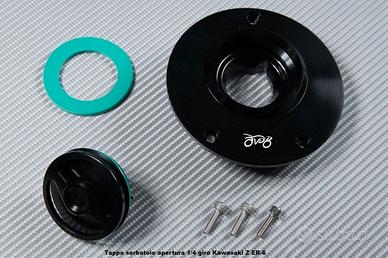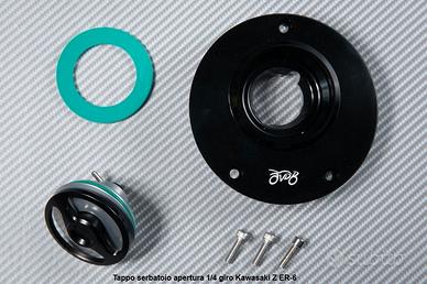 Tappo serbatoio ad apertura rapida, senza chiave. Sistema di apertura ad appoggio e 1/4 di giro, rapido, ideale per un utilizzo su pista in gara, dove i secondi sono preziosi! (Sicuramente, anche perfettamente adatto all'uso stradale, ma il suo sistema di apertura senza chiave potrebbe non essere la soluzione per la città°.